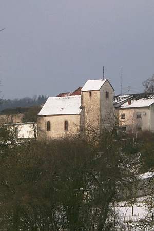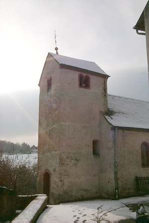 Am südlichen Ortsrand über einem Felsvorsprung über dem Bacheinschnitt des Dilmarbaches thronende kleine, verputzte Saalkirche. Das durch rundbogige Fenster gerade geschlossene Schiff wurde 1738 erbaut und an den spätromanischen Ostturm, ursprünglich Chorturm angefügt. Der dreigeschossige Turm wurde beim Neubau des Schiffes als Eingangsturm geöffnet und tonnengewölbt. Gekuppelte Schallarkaden, ein Kämpfer wird von einer Kopfmaske geziert. Im inneren geschnitzter Altar von 1739 mit den Figuren der Mutter Gottes, des heiligen Wendelins, des heiligen Gangolfs, und der heiligen Walburga. [1]