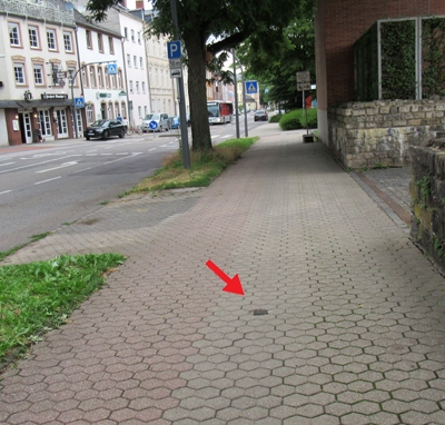 Stolperstein befindet sich auf Gehweg gegenüberliegender Straßenseite Weberbach Nr. 50. [3]