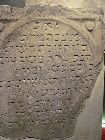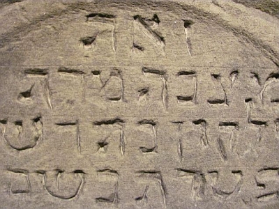 Dies ist die Grabsäule der Frau Belle'chen, der Tochter des Herrn Salomo, die verschied mit einem guten Namen am Montag, zwanzig Tage im ersten Adar des Jahres einhundert und neun und sechsten Jahrtausends. Es ruhe ihre Seele im Bündel der Lebendigen zusammen mit den übrigen