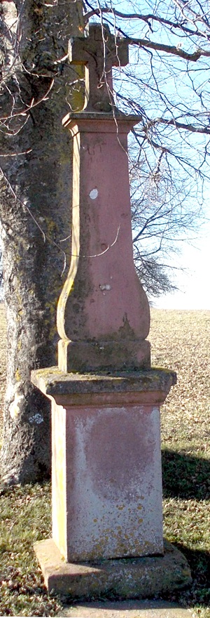 An der Straße, die von der Straße Pluwig - Franzenheim zur Höhe abzweigt und weiter nach Ollmuth führt, steht auf der Höhe neben der Kapelle, ein 2,50 m hohes Kreuz, das aus rotem Sandstein gefertigt ist. Unter einer längeren, inzwischen verwitterten Inschrift in lateinischer Sprache steht auf dem Sockelstein des Altartisches: "Errichtet im Jahre 1841 von P. Hermesdorf, dem Jungen aus Ollmuth".
