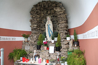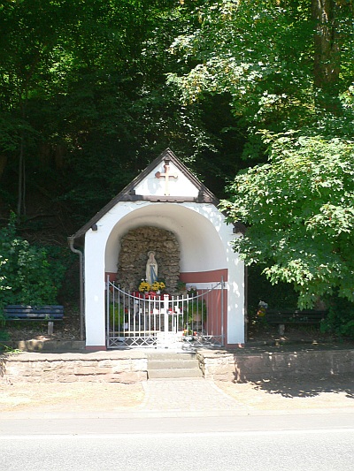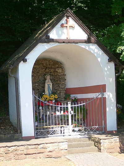 Grund der Errichtung: Der damaligen Pastor Andreas Johanny, der in Birresborn von 1896-1927 tätig war, hat im Jahre 1906 die Lourdeskapelle erbauen lassen. Sie wurde als Dank für die Heilung nach schwerem Augenleiden errichtet. Er war von November 1904 bis Januar 1905 an einer Lungenentzündung und später an einer schweren Augenentzündung erkrankt. Er starb als Pfarrer im Ruhestand am 13.08.1935 und wurde hier beerdigt. [1]