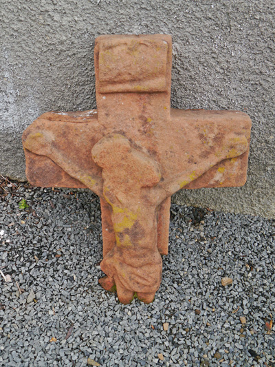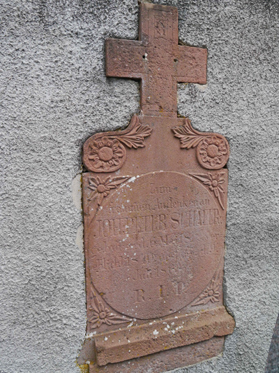 Am Eingang und innen an der Friedhofsmauer sind ehemalige alte Grabkreuze aus Sandstein in die Mauer integriert worden. Die meisten Kreuze oder Kreuzreste sind nicht mehr zu entziffern. Dennoch ist er Erhalt dieser früheren Kreuze sinnvoll. [1]