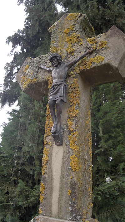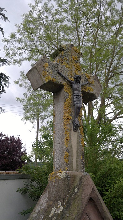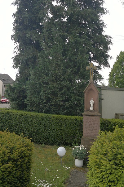 Während des zweiten Weltkrieges wurden hier vorübergehend mehrere russische Kriegsgefangene begraben, die oberhalb des Ortes bei Schanzarbeiten ums Leben kamen und nach dem Krieg auf einen Soldatenfriedhof überführt wurden. […] Nach mündlicher Überlieferung ging man früher zu diesem Kreuz beten, wenn es lange nicht mehr geregnet hatte und wenn jemand schwer krank war. Noch heute [1998 Red.] findet sich jährlich die Prozession an diesem Kreuz, zu dem ein Weg aus Sandsteinplatten führt, zum Gebet ein. [2]