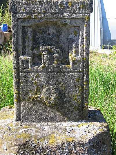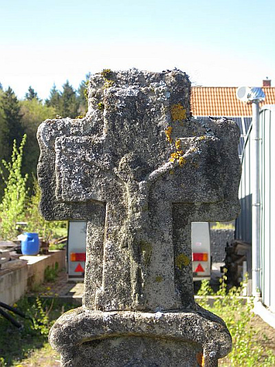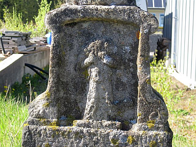Reich skulptiertes, barockes Schaftkreuz, bezeichnet 1772.