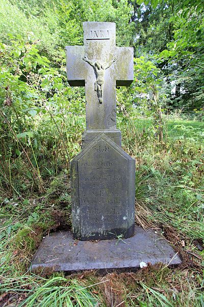 Südwestlich des Ortes am Dürenbach. Gut erhaltenes Sockelkreuz aus Schiefer, laut Inschrift 1858 durch HUB. STOLZ U. EHEF. CA. FEILEN U. J. NIC. KÖLLERS V. OBERLASCHEID errichtet. [1]