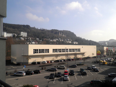 Ganz rechts ist das Gebäude des Gerolsteiner Flora-Brunnens zu erkennen (Treppengiebel). [1]