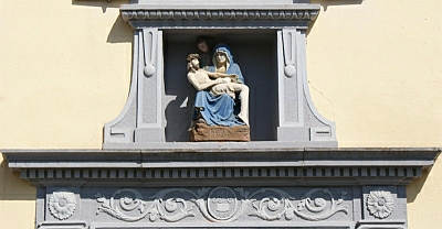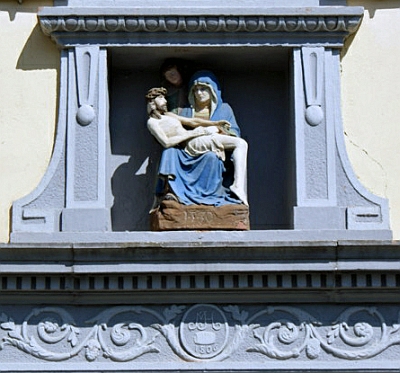 Mit Sicherheit handelt es sich nicht um das Baujahr des Hauses, denn dieses ist wesentlich älter. Vermutlich weist die Jahreszahl auf einen Besitzerwechsel oder auf eine Umbaumaßnahme hin. Über dem Sandsteinportal befindet sich ein 70 Zentimeter hohes Vesperbild mit der Jahreszahl 1530. Es stellt die Mutter Gottes dar, wie sie den Leichnam Jesu hält. Dahinter wird die Figur des heiligen sichtbar. Im Jahre 1830 ging das Gebäude in den Besitz der Gemeinde Piesport über. Sie nutzte es bis 1970 als Dorfschule. Es reifte der Plan, das Haus zu einem neuzeitlichen Bürgerhaus umzugestalten. Die Einweihungsfeier dieser neuen Begegnungsstätte für Bürger und Vereine fand am 12.12.1986 statt. Der ehemalige Schulsaal präsentiert sich heute als Festsaal. Im Erdgeschoss befindet sich ein Weinprobierraum unter einem alten Deckengewölbe.