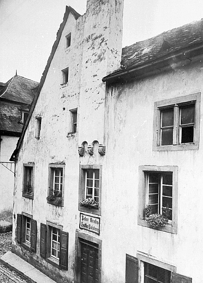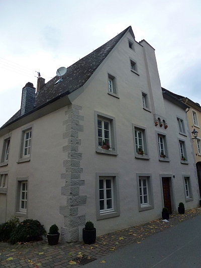 Eines der ältesten noch erhaltenen Wohnhäuser in Neumagen-Dhron. An seinem Giebel sieht man einen auf zwei Rundbögen über drei grotesken, maskengeschmückten Kragsteinen von Volutenform vorgebauten Schornstein, rechteckige Fensterpaare und über einem Giebelfenster die Jahreszahl 1618. An der Seitentür mit zweiteiligem Oberlicht und Renaissancegewände steht die Inschrift Den 21 Jnii ano 1618 Thömmel. [2]