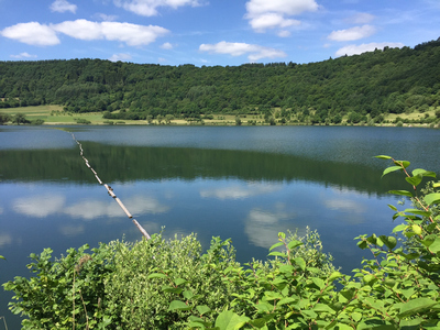 1.70Durchmesser und eine Trichtertiefe von fast 200m, Wasserfläche 25ha, Wassertiefe 17m, circa 29.000 Jahre alt.