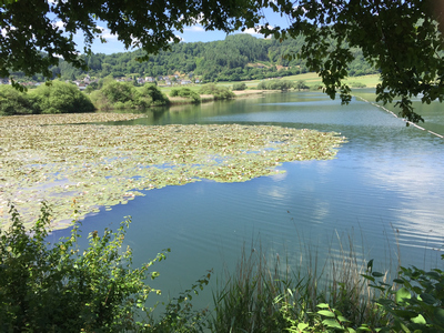 Größter Maartrichter der Eifel (vom Landesblick gute Übersicht über Maar und Landschaft). Die Wasserfläche ist durch Entwässerung verkleinert worden, weil die Anwohner dadurch ein größeres Ackerareal gewinnen wollten.