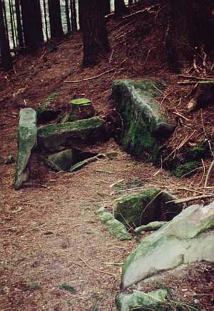 Die kleinere der beiden Fundstellen besteht aus sogenannten Plattengräbern, die aus vier losen, senkrecht in den Boden eingesetzten Steinplatten gebildet werden. Zum anderen sind Steinkisten vorhanden, bei denen eine viereckige Vertiefung in einen Steinblock eingearbeitet wurde. Von der Abdeckung ist hier leider nichts mehr erhalten; Bei den Plattengräbern ist mindestens eine weitere Steinplatte als oberer Abschluss zu erwarten.