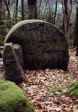 In der Nähe der römerzeitlichen Gräbergruppen wurde eine Fundamentplatte und der Rest einer weiteren Grababdeckung gefunden. Hierbei handelt es sich um einen Tonnen- oder Halbwalzenstein. Die Herkunft dieser Bezeichnung ist von der Form des Steines unschwer abzulesen. Der Stein war innen ausgehöhlt und wurde über die Urnen und Beigaben gestellt. Befunde bei ähnlichen Grabstätten zeigen, daß diese Gräber mehrfach benutzt wurden.
