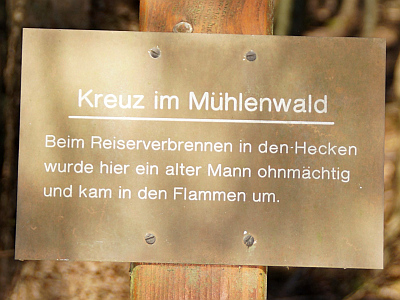 Beim Reiserverbrennen in den Hecken wurde hier ein alter Mann ohnmächtig und kam in den Flammen um. [1]