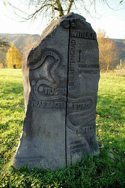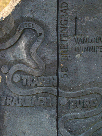Am alten Weg von Burg nach Enkirch etwa 100 m hinter dem Schloss, steht am Enkircher Weg ein Stein, des 50. Breitengrad. [1]
