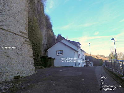 Die Hofkapelle oder Antoniuskapelle, auch Kapelle des Fleckens genannt oder Kapelle im Tal (nicht zu verwechseln mit der Schlosskapelle in einem der Halbtürme direkt im Schloss), wurde am 28.5.1487 geweiht. Sie war recht groß und stand etwas weiter rechts neben Wasserturm, nah am hohen Burgfels.