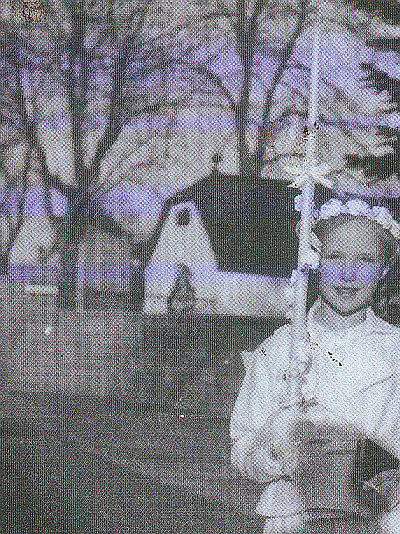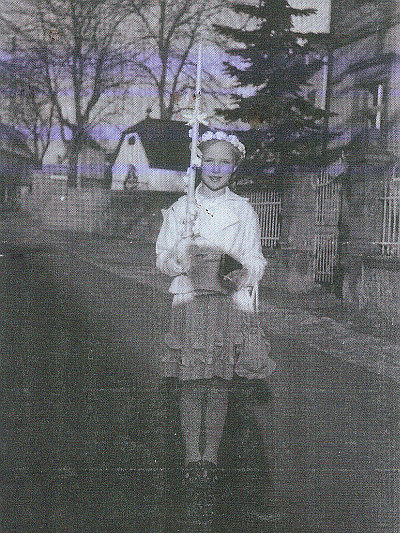 Von diesem Bauwerk blieb nichts erhalten. Das Kommunionfoto von Marianne Lang zeigt im Bildhintergrund die Kapelle. [2]