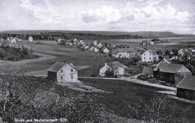 Der Ort Neuheilenbach liegt im nördlichen Bereich der Verbandsgemeinde Kyllburg. Neuheilenbach wurde im Jahr 1831 erstmals erwähnt und hat daher noch keine große geschichtliche Vergangenheit. Seine Gründung erfolgte durch einen Schäfer aus Nattenheim, der sich mit seiner Herde bis in das kaum durchdringbare Waldgelände wagte und das erste Haus auf der heutigen Gemarkung Neuheilenbach baute. Im selben Jahr sind weitere drei Häuser gebaut worden, so dass diese Siedlungen als Gründungsstock des heutigen Neuheilenbach anzusehen sind. Bis zum Jahr 1850 bestand die sogenannte Niederlassung aus zwölf Häusern, die sich in Oberdorf und Unterdorf aufteilten. Die ersten Häuser waren klein und mit Stroh gedeckt. Ihre Bewohner lebten in ärmlichen Verhältnissen. Sie beackerten das karge Land und lebten von einem kleinen Viehbestand, der meist nur aus Ziegen bestand. Im nahe gelegenen Kyllwald bot sich die einzige Möglichkeit durch Wald- und Köhlerarbeit einen geringen Tagelohn von damals sechzig Pfennig zu verdienen. Mit dem Bau der Bahnstrecke Trier-Köln in den Jahren 1870 und 1871 erlebte der Ort einen Aufschwung. Es entstanden Arbeitsplätze und für Fuhrleute bestand eine Einnahmemöglichkeit durch den Transport von Holz und Holzkohle zum Bahnhof Densborn. [2]