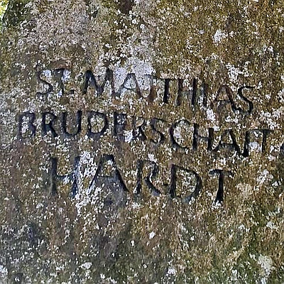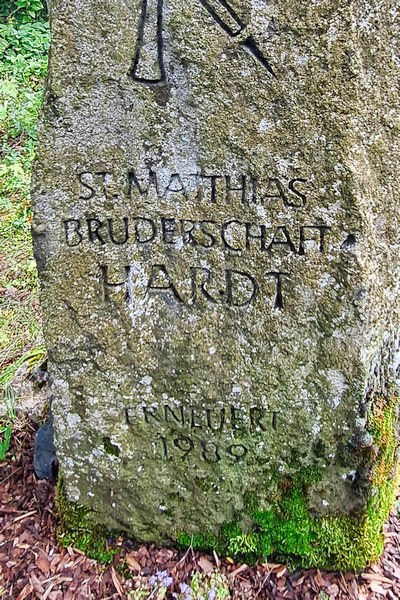 Erst nach einigen Jahren, mittlerweile waren neue, jüngere Brudermeister im Vorstand, erfolgte eine Einigung und der Streit wurde beigelegt. Später wurde das vorhandene Kreuz durch ein neues Eichenkreuz, welches der Brudermeister Robert Scheepers fertigte, ersetzt. Aus Schweißdrähten wurde hierzu von Herrn Nowack die Aufschrift "Sankt Matthiasbruderschaft Hardt" gemacht.