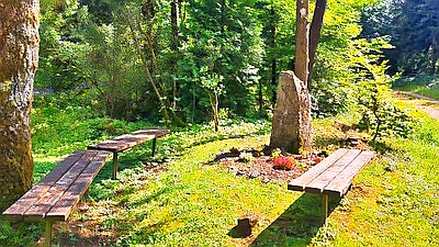 Später wurde die Sitzgruppe aufgestellt. Heute wird dort beim Hin und Rückweg Pause gemacht. Der Pfarrer aus Hardt kommt beim Hinweg und feiert mit den Pilgern Eucharistie. Auf dem Rückweg feiern die Pilger dort einen Wortgottesdienst. [1]