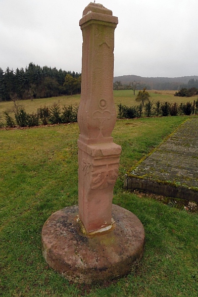Auf der Höhe nach Arenrath zu steht an einer Wegkreuzung ein hohes Schaftkreuz. Ohne Sockelstein ist 2,40 m hoch. Aus rotem Sandstein gehauen zeigt es schon erhebliche Verwitterungserscheinungen. Der Blick des Kreuzes ist nach Herforst gerichtet. Der Schaftfuß steht in einem großen Mühlstein. Schaftfuß mit größerem Altarvorsprung. Der Schaft ist barock artig geformt, hat aber keine Blattverzierung. Auf dem Altartisch stehend eine Monstranz ausgehauen. Sicherlich war hier bei Bittprozessionen ein Haltepunkt.