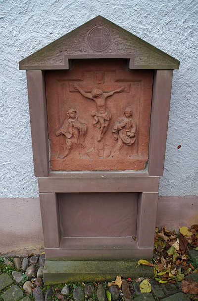 Gegenüber dem Kriegerehrenmal, angelehnt an einer Hauswand, am Weg zur Kesselstattkapelle.