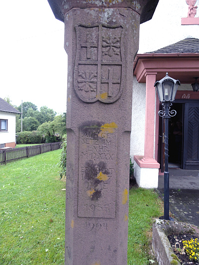 Abschluss eines spätgotischen Nischenkreuzes, ehemals bezeichnet 1530 (neuer Schaft mit Renovierungsdaten 1847, 1889, 1957 und 1994). [1]
