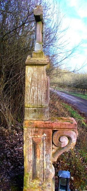 Steinernes Schaftkreuz an Böschung eines Wirtschaftsweges gelegen. [1]