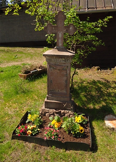 Dieses Kreuz steht gegenüber dem Gasthaus Waldesruh auf Dahnen – Wehrbüsch, an der Straße rechts. Es ist ein altes Grabkreuz, wie mir der Besitzer Herrn Fiedler mitteilte. In der Mitte war einst eine schwarze Schrifttafel aus Marmor, die durch einen Steinschlag in Brüche ging. [1]