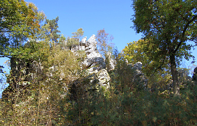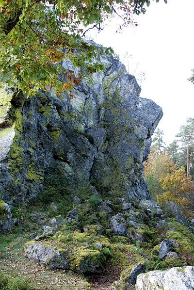 Ausgedehntes Felsmassiv inmitten eines märchenhaften Eichenwaldes. Der Quarzitwacken ist einer der schönsten seiner Art im Hunsrück. Vor rund 200 Jahren soll hier Schinderhannes in einer seitlichen Nischenhöhle genächtigt haben. [1]