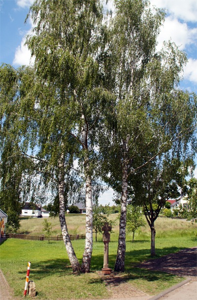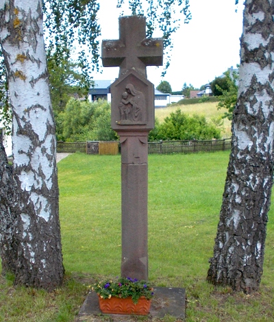 Die spitzwinklige Nische mit Abschlußkreuz wirkt etwas breit und wuchtig. Die Inschrift war auf dem Kreuz nicht zu finden, auch keine Jahreszahl.