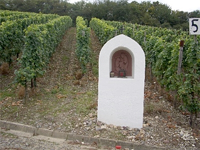 7 „Fußfälle“ durch die Weinberge erinnern an den Fall Jesu auf seinem Kreuzweg. Die Vorgänger – vor ca. 300 Jahren errichtet, waren verfallen. Die Kinder des Dorfes hielten damals Bittgänge für die Schwerkranken zu beten.