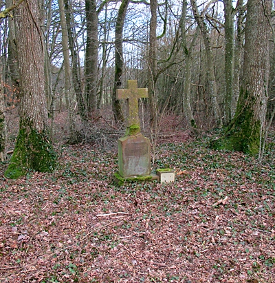 Neben dem Kreuz befindet sich ein kleiner Gedenkstein.