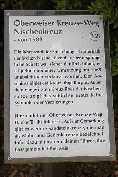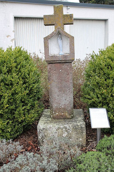 Die Jahreszahl der Entstehung ist unterhalb der breiten Nische erkennbar. Der ursprüngliche Schaft war sicher deutlich höher, er ist jedoch bei der Umsetzung um 1965 unabsichtlich verkürzt worden. Den Abschluss bildet ein Kreuz ohne Korpus. Außer dem eingeritzten Kreuz über der Nischenspitze zeigt das schlichte Kreuz keine Symbole oder Verzierungen. [1]