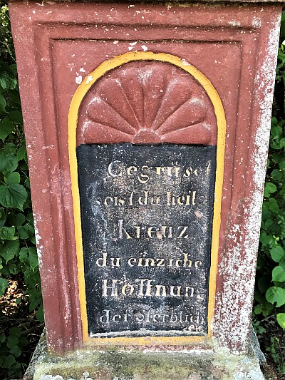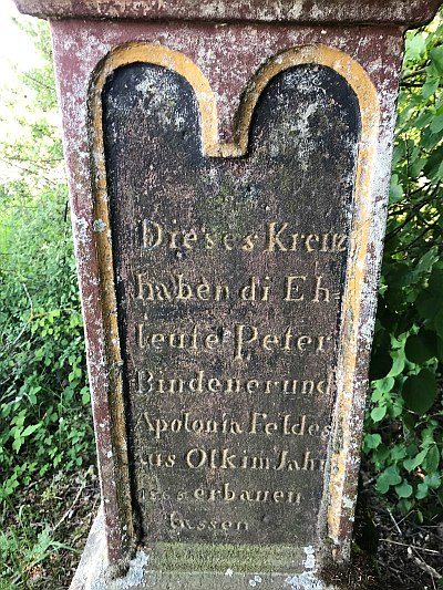 Gegrüßet seist du Heilig. Kreuz, du einziche Hoffnung Rechte Seite: Dieses Kreuz haben die Eheleute Peter Bindener und Apolonia Feldes aus Olk im Jahr 1868 erbauen lassen.