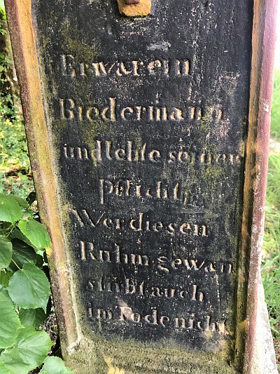 Linke Seite: Er war ein Biedermann und lebte seiner Pflicht, wer diesen Ruhm gewan, stirbt auch im Tode nicht.