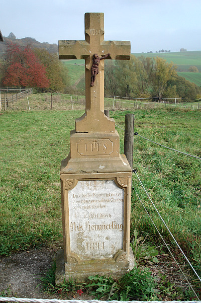 An der Straße nach Kollesleuken steht gegenüber dem Friedhof in einer Wiese, ein Steinkreuz errichtet 1894.