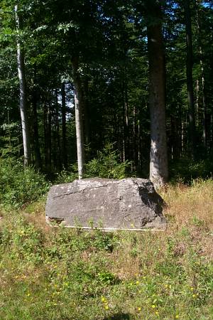Nach den ersten Häusern biegt man in einer 180-Grad-Kehre am unteren Ende der Kehre (vor dem Ortsschild) nach rechts in einen asphaltierten Feldweg ab. Der Weg führt am Waldrand entlang. Der Asphaltweg biegt nun bald nach links in die Felder ab. Man bleibt aber auf dem nun nicht mehr asphaltierten Weg am Waldrand. Bald darauf kommt eine Verzweigung halblinks hier geht's zum Stein von Farschweiler. Nach einigen hundert Metern sieht man links und rechts vom Weg Hügelgräber. Immer weiter gerade aus sieht man rechts über dem Weg ein gelbes Jagdhaus und kommt nach etwa 1 Kilometer zu einer Waldwege-Kreuzung. Dort gerade aus bis nach etwa einem weiteren Kilometer man nur rechts oder links gehen kann. Man geht nach links leicht hinunter ins Bickenbachtal und sieht unübersehbar bei der nächsten Waldwegekreuzung in der Nähe der Quelle des Bickenbachs den gesuchten Stein.