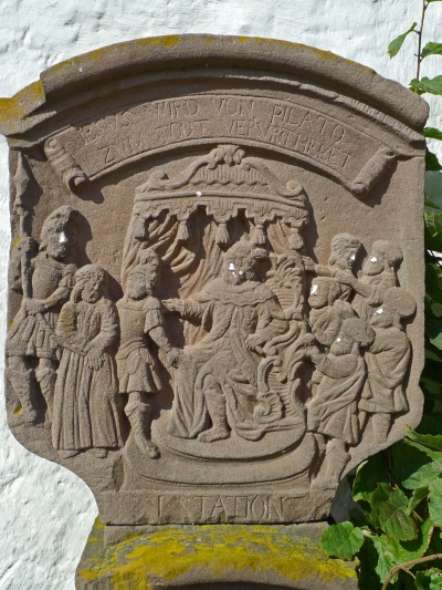 Am Nord- und Südrand des Kirchhofs 15 Stationen eines barocken Kreuzwegs mit segmentbogig schliessenden Reliefplatten auf glatten Schäften. Die nur fragmentarisch erhaltenen Stationen 14 und 15 sind in die Stützmauer an der Südseite des Kirchhofs eingelassen. Hier auch einige alte Grabsteine. [1]