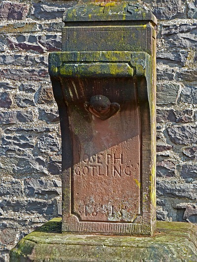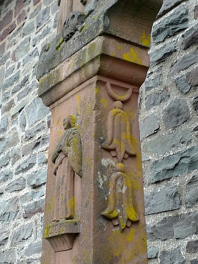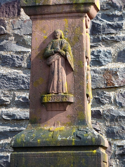 Auf dem Friedhof vor der Leichenhalle steht ein Kreuzigungsbildstock in später Nachfolge des sogenannten Sefferer Typs. Ungewöhnlicher sehr hoher und breiter Schaftfuß mit weit auskragender Abstellplatte, der in einem ebenfalls mächtigen adäquat gestaltetem Fundamentstein steckt. An der Vorderseite die Inschrift JOSEPH GOTLING 1815. Der kurze, am unteren Ende stark verbreiterte Schaft zeigt an der Vorderseite das inschriftlich benannte Reliefbild des heiligen Josef und seitlich je zwei Glockenblüten. Darüber Kreuzigungsgruppe mit als Halbrelief gearbeiteten Begleitfiguren.