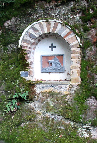 Dieser Kreuzweg wurde im Rahmen des Flurbereinigungsverfahren hergerichtet und am 14. September 1997, dem Tag der Kreuzerhöhung, eingeweiht.