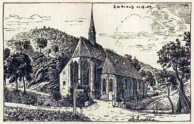 Sogenannte Klause. 1475-92 erbaut. Prächtiger Hochaltaraufsatz, um 1720. Taufstein, um 1610. Bildwerke, darunter vorzügliche heilige Margarethe 18. Jahrhundert und Ölgemälde 18. Jahrhundert. [2]
