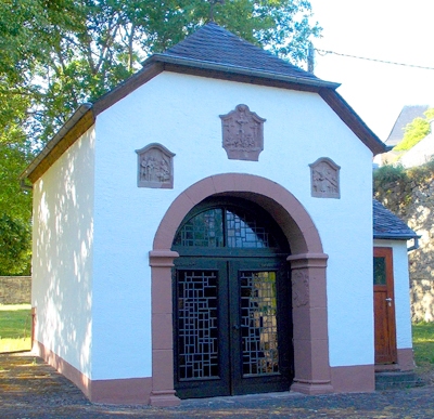 Kapelle mit Krüppelwalmdach, Anfang des 19. Jahrhunderts, mit drei barocken Reliefs. [1]