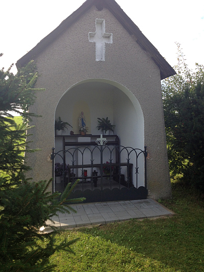 Das kleine Kapellchen ist der Mutter Maria gewidmet. Unmittelbar an der Kapelle steht auch eines der 7 Fußfall-Kreuze. [1]