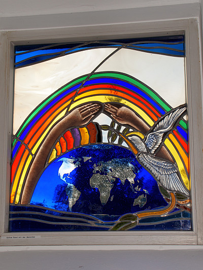 14 kleine Seitenfenster wurden durch die Firma Kaschenbach in Formen und Farben der über dem Altar den Blick anziehenden Fensterrose zugeordnet.