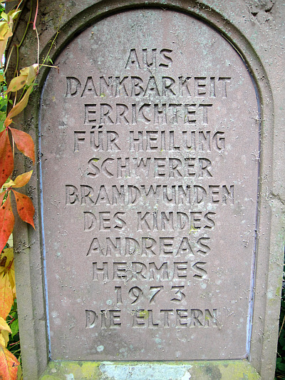 Für die erfolgte Heilung errichteten die Eltern dieses Kreuz. [1]