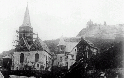 Neben der evangelischen Kirche in Trarbach. Der spätgotische, 1395 erstmals erwähnte Profanbau mit Treppenturm diente ursprünglich als Hospitalklause. 1573-1815 beherbergte das Gebäude, das noch heute als Jugendhaus dient, die erste höhere Schule im Moseltal zwischen Trier und