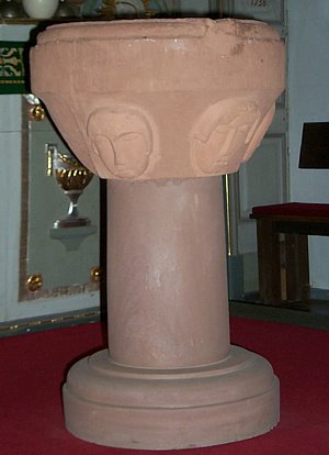 Nahe dem nordwestlichen Dorfrand inmitten des ehemaligen Kirchhofs gelegen.