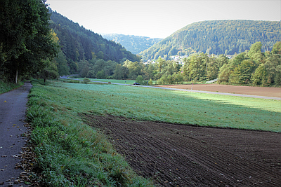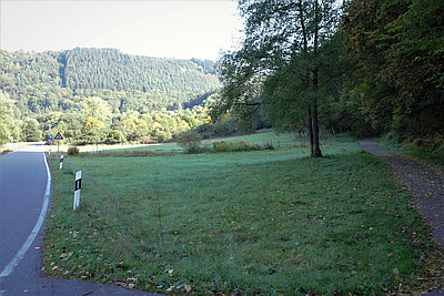Flur 6 - Sie beschränkt sich mit 2 Flurteilen "Eckenberg" und "Ockenberg" auf einen heute bewaldeten, nur etwa 50 Meter breiten Bergstreifen hinter "Ober der Brücke" bis in die Nähe vom neuen Schwimmbad. Die Kyll bildet mit dem Berghang, den sie anstößt, die "Ecke". Im Eigentum der Dorfleute war auch diese Flur wie die meisten Berghänge ehedem landwirtschaftlich genutzt, was in "Ockenberg" = Ackerberg noch anklingt. Über dem Eckenberg hat früher eine Waldschneise vom Hochmarksweg her einen freien, lustigen Ausblick in das nördliche Kylltal gestattet. Nach dem Besitzer des Grundstückes ist das heute noch als "Schmittesfinsterchen" bekannt. [1]