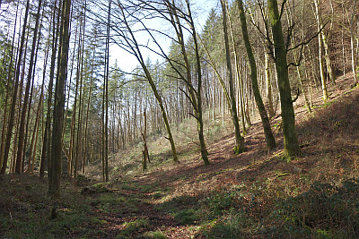 Über dem Weg zur Hochmark sind Birken seit eh und je heimisch. Sie lassen sich in der jungen Fichtenkultur auch heute noch kaum unterdrücken.