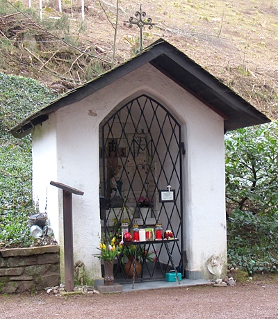 Wegekapelle, circa 4,5 Kilometer östlich der Ortslage am tief eingeschnittenen, beidseitig bewaldeten Seitental des Serriger Baches gelegene Quelle (heiliger Born).